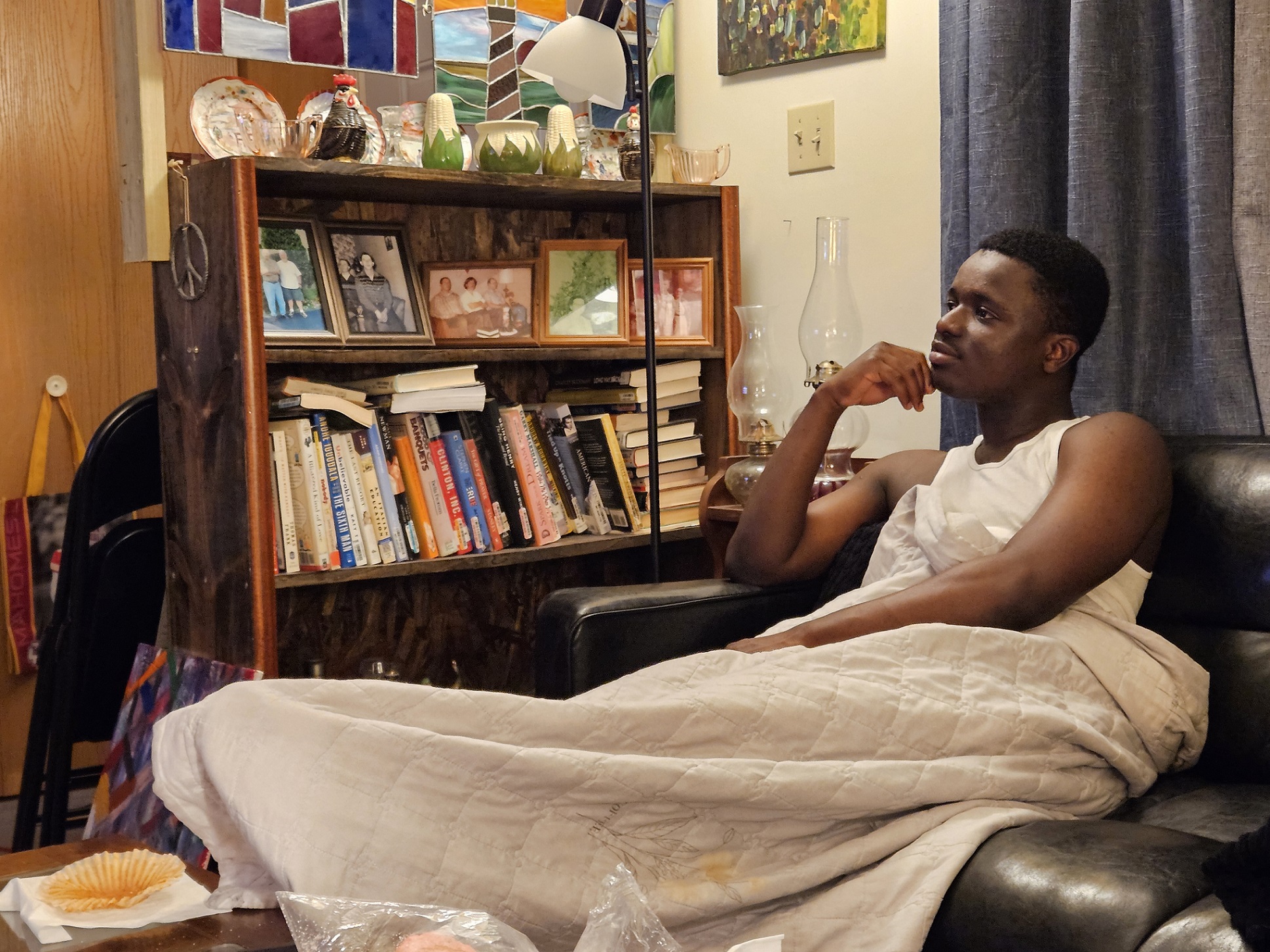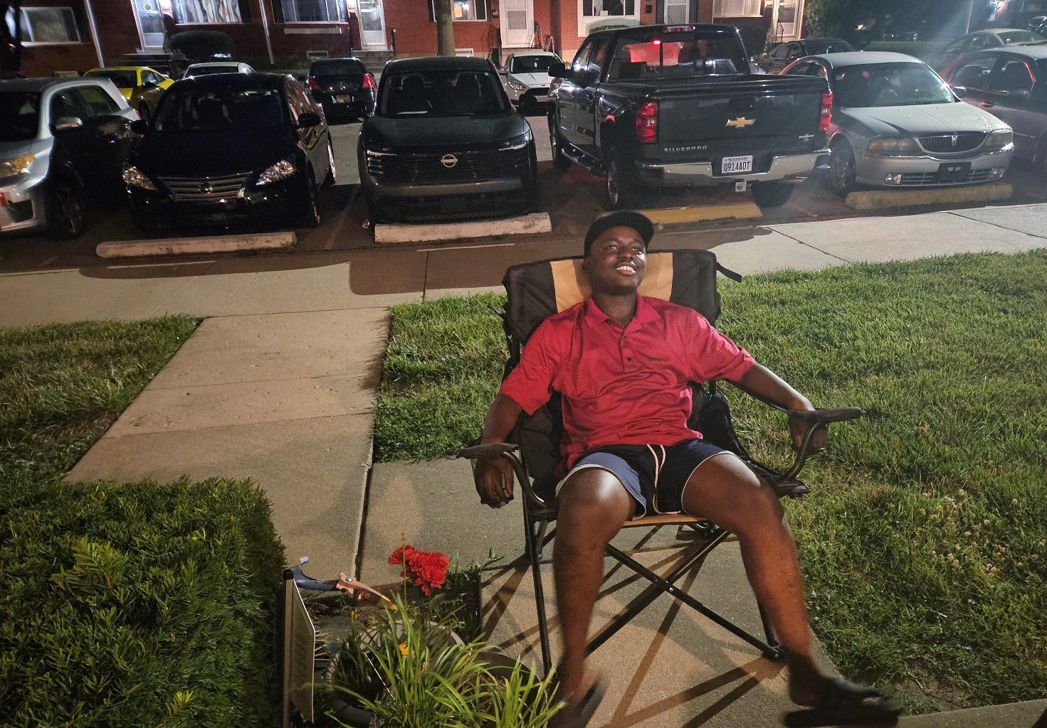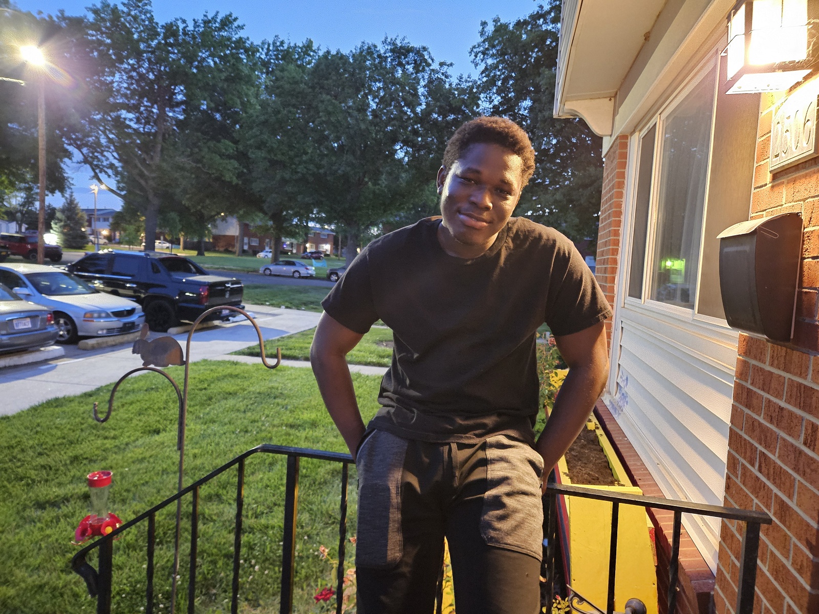 By 9:00 P.M. I had awakened from my nap….semi-refreshed, but in good enough shape to stay awake for several more hours. Mannie’s online IT session also ended at 9:00. He came back downstairs and our nightly ritual was to sit on the front porch and talk. These were pleasant sessions…..just Mannie and I….sitting and talking about whatever came to our mind. Mannie would often become philosophical and tell me of his life dreams and plans. Other times we would talk of things past….of his experiences in his home country of Ghana. Mannie could explain matters in the greatest of detail, giving examples or suppositions to prove point or to get his story across. Mostly I just sat and listened, occasionally interjecting a comment or a question. And while Mannie and I talked…. I took photos, usually much to his displeasure. I was not deterred. I took pictures of what was in front of me, sometimes with unflattering results. But, with time I think he realized it was better to cooperate. Pictures turn out a lot better that way!