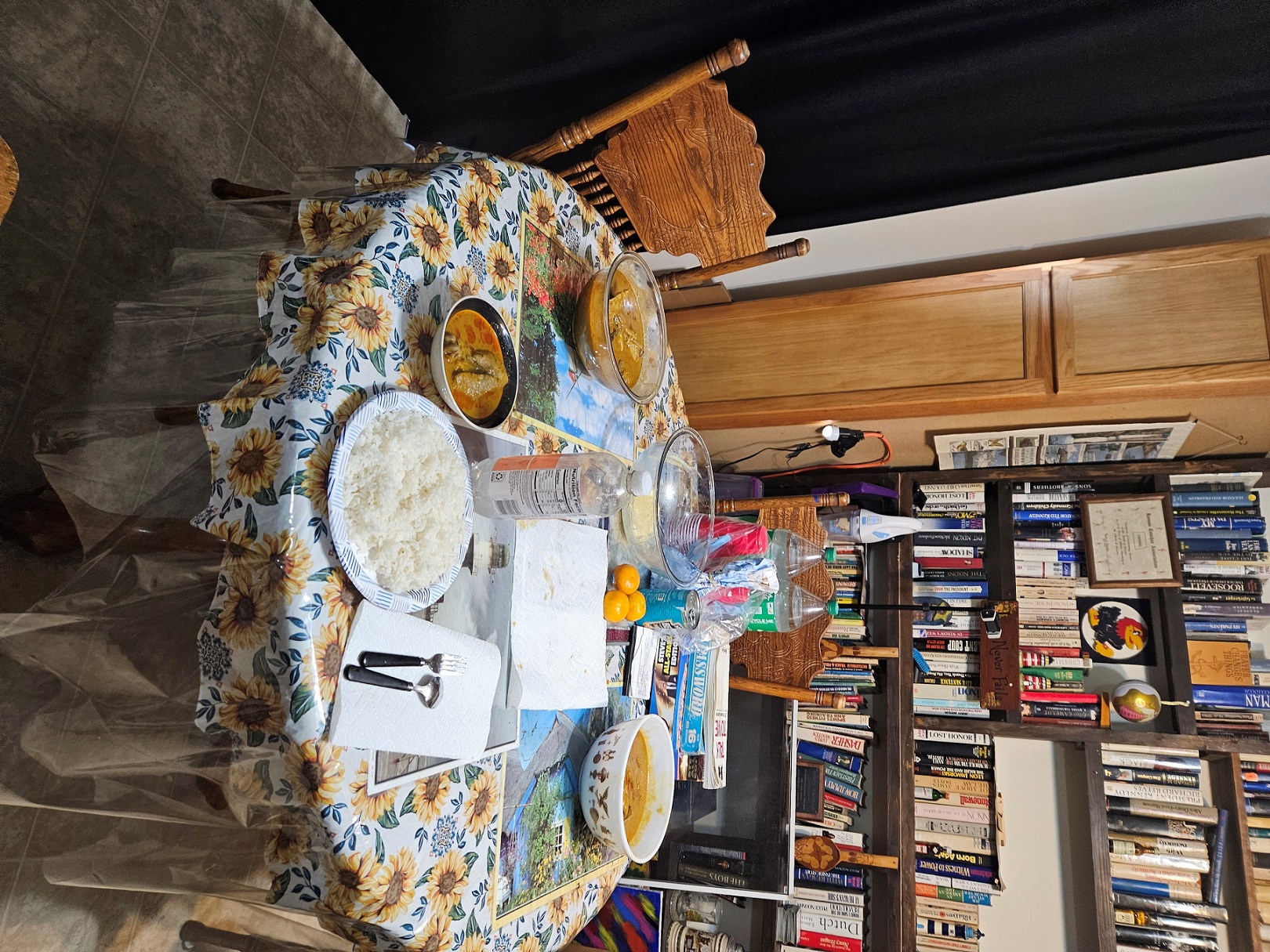 Needless to say, I was more that willing to turn over anything involving food to them. In preparation for preparing the meals, we made a trip to Lawrence to an African food store. Since I would have been useless to them inside the store, I simply waited in the car. Don’t even ask me what they bought! We also make two or three trips to an oriental food market here in Topeka. Again…. I simply sat in the car and waited. And, again, I asked no questions about what they bought. I mean…. This would have been foreign information to me. However, our stalwart food supplier was good old Walmart. Apparently they had sufficient choices available to satisfy their needs. I didn’t attempt to interfere. It is better to just stay out of affairs that I do not understand….and do not concern me.