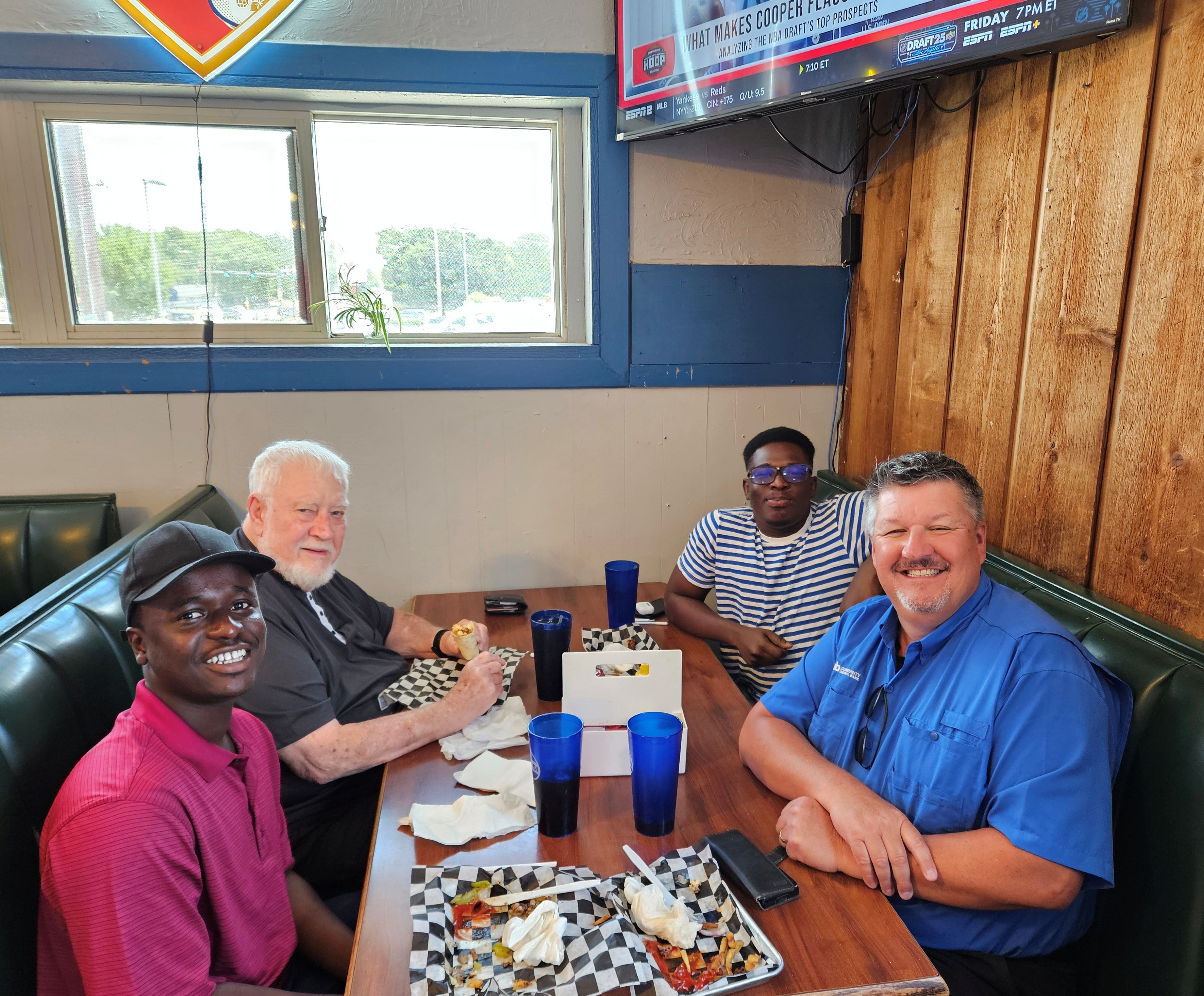 Talking about food sort of leads me into another of our favorite activities of the summer….eating out….like in various restaurants. The first day Romeo and Mannie arrived, I took them to The Golden Corral. As already stated, this is where I usually take guests the first day they arrive. Normally, they are impressed…..especially guests from foreign countries. There is an almost overwhelming array of food to choose from: meat, vegetables, fruit, salad, desserts…. To me….and probably most Americans…it looks like food paradise! To make it even more appealing, it is a buffet….an all-you-can-eat buffet. Personally, I like the place! Who wouldn’t? However, back during the COVID pandemic, it fell out of favor with me and the people I meet regularly for lunch. Not because of the food…. That probably never happen….but because we felt it was more civically responsible and maybe even more ethical to eat in locally owned and operated eating establishments. Since many locally owned eating place were being forced out of business by the large national franchise places, it just didn’t seem right to support large corporations who had the resources to withstand economic hardships and watch locally owned establishments forced to close.